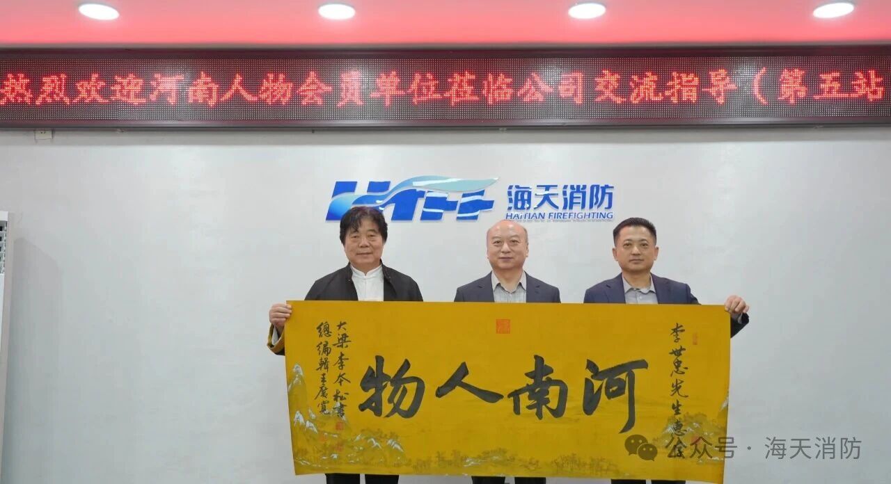 2025年9月24日,来自不同行业的“河南人物”代表一行走进海天消防,董事长李世忠携公司高层管理团队热情接待,以“严守安全底线,彰显家国情怀”为主题,展开了深入且富有成效的互动交流。
